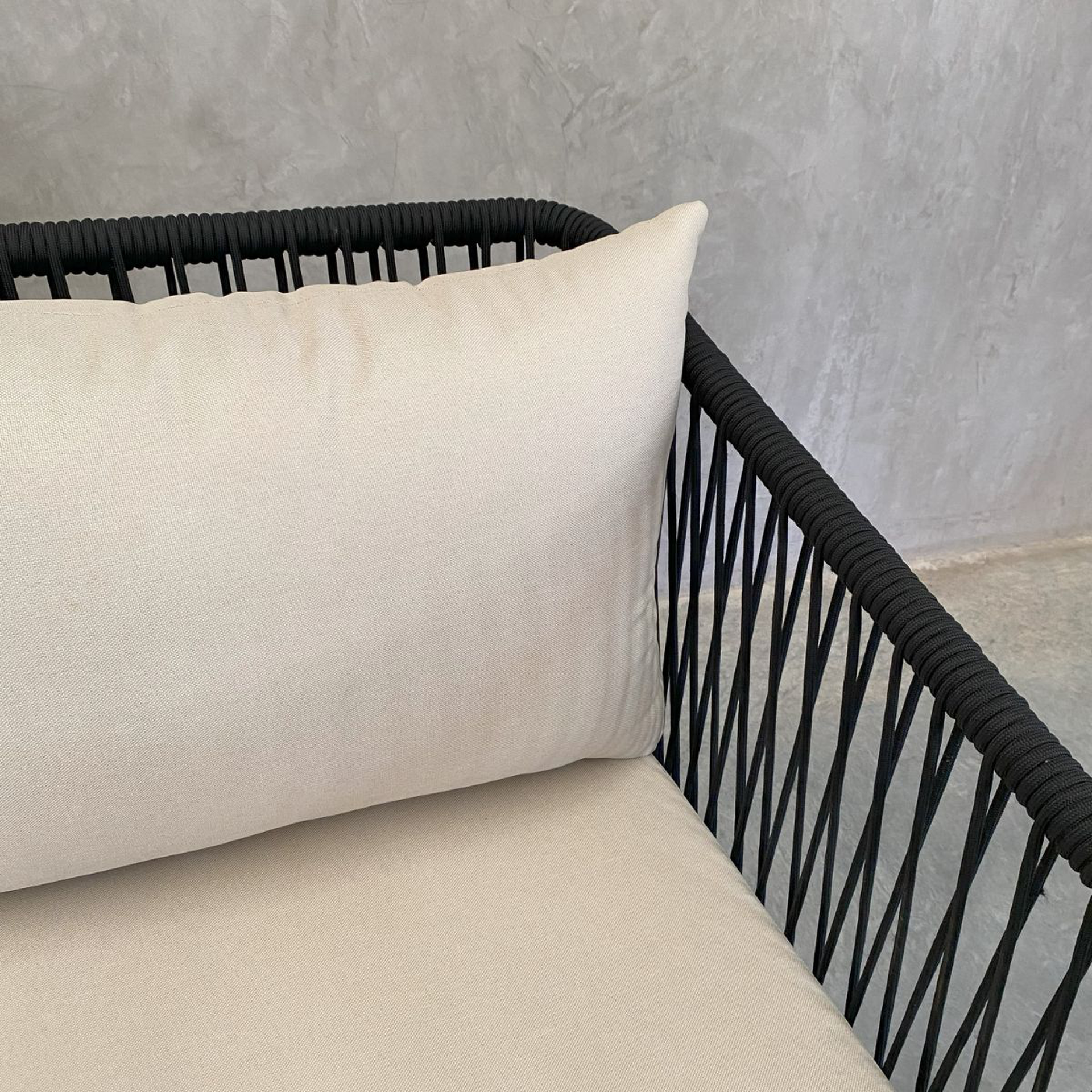 Para uso en interiores. Fabricado en acero con pintura electroestática y cuerda multifilamento de polipropileno (incluye cojinería en tela curri)