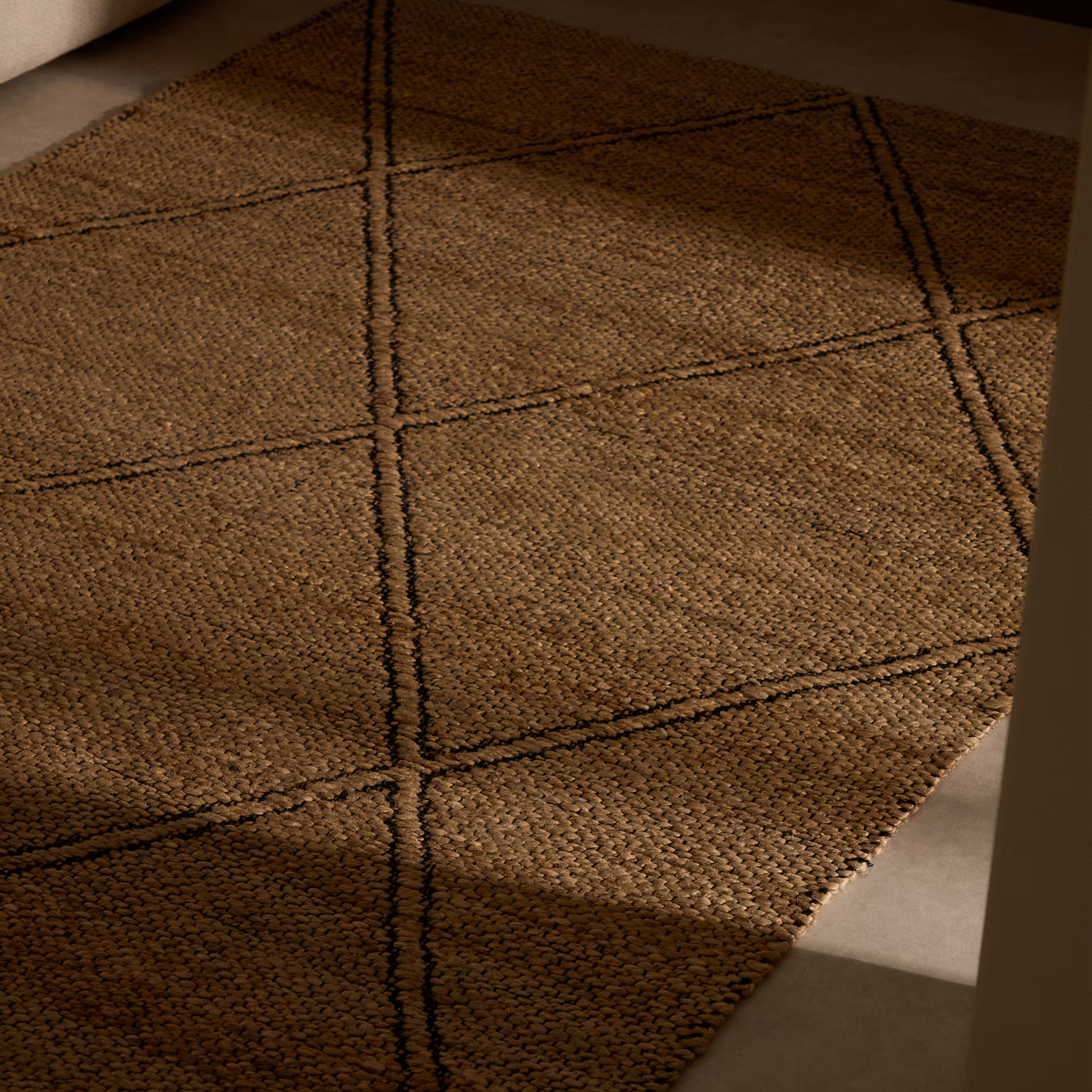 Elevar el estilo de tus estancias es posible con la alfombra Vallalta. Está hecha a mano con yute, por lo que cada una será exclusiva, con tonalidades y texturas propias. Los materiales naturales son más tendencia que nunca.