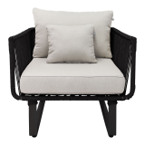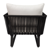 Para uso en exterior techado. Fabricado en acero con pintura electroestática y cuerda multifilamento de polipropileno.
