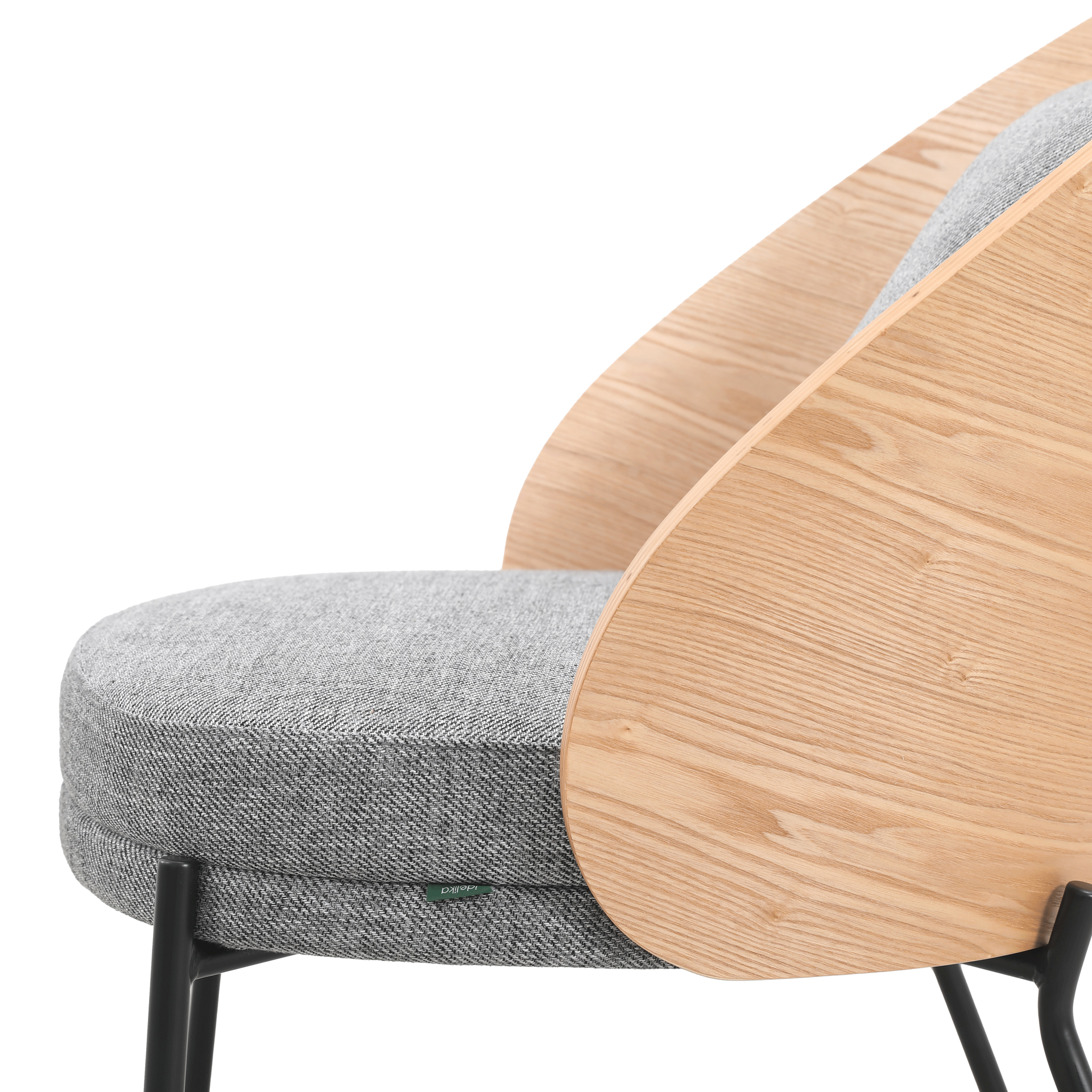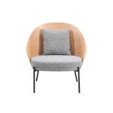 Venice sillón, fabricado en hierro negro, respaldo de madera y asiento tapizado.