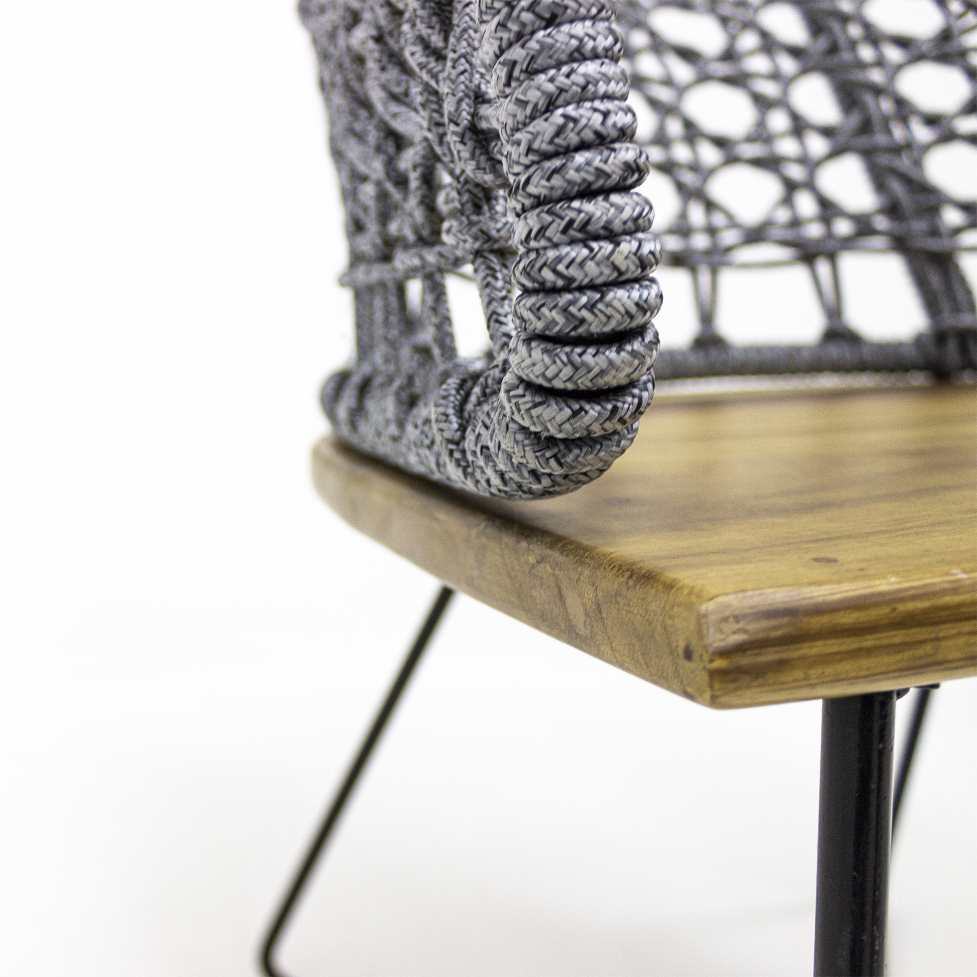 Una exquisita combinación de materiales, logran esta gran pieza para tu terraza fabricada en madera de parota acero al carbón y tejido de nylon..