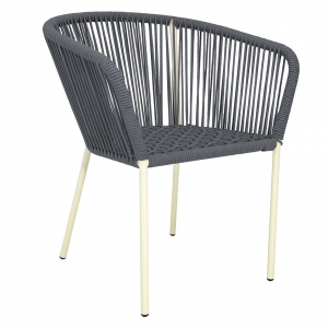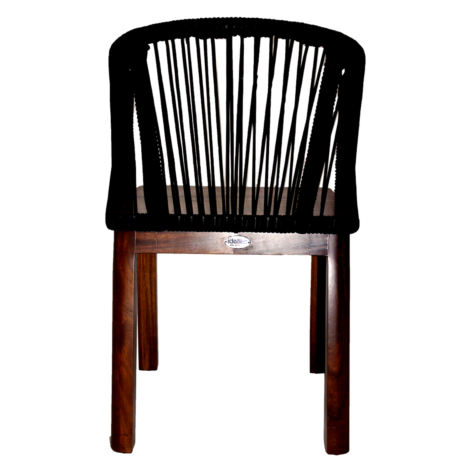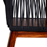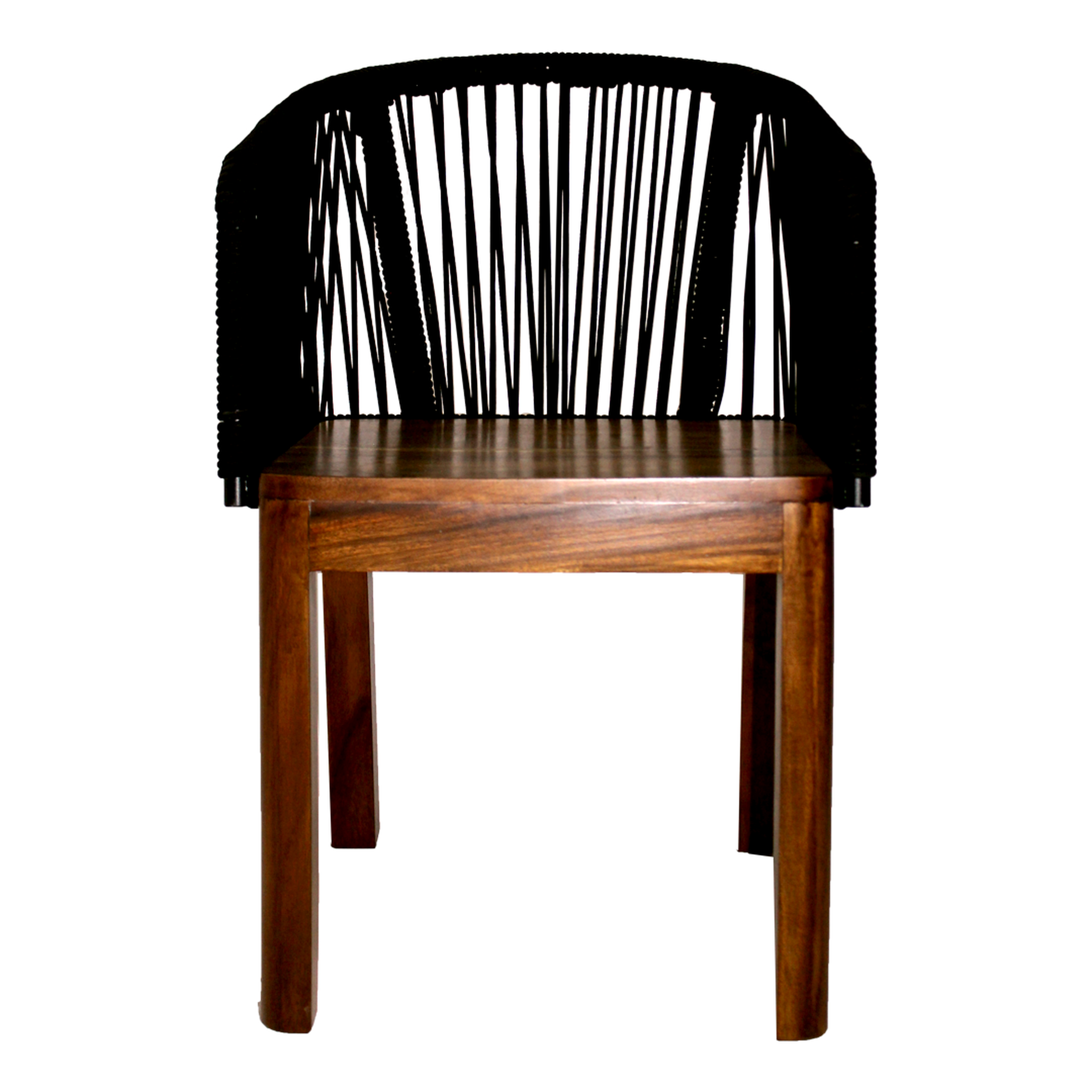 Silla Zicatela base madera de parota, respaldo metalico tejido a mano con cuerda nylon de 16mm, multifilamento de polipropileno. (exterior techado)..